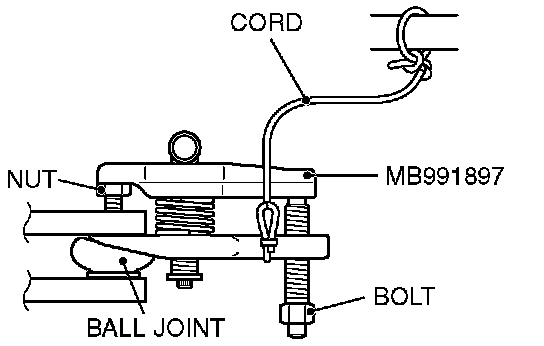 1. Install special tool MB991897 (ball joint remover) as shown in the figure.