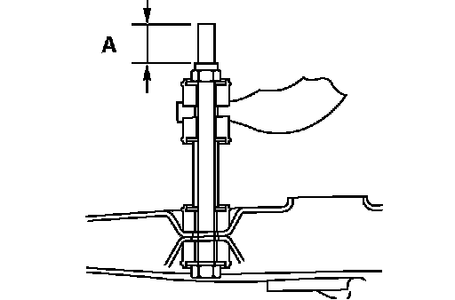 Install the stabilizer rubber and collar as shown in the figure, and tighten the self-locking nut so that the protruding length of the stabilizer bar mounting bolt protruding part meets its standard value (A).