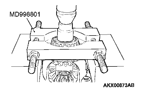1. Using special tool MD998801, support the taper roller bearing, and then set them on the press.