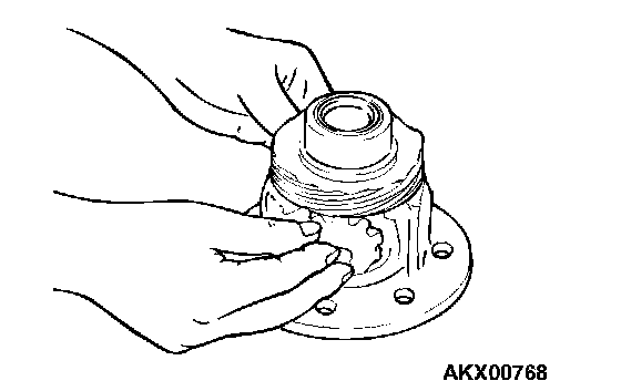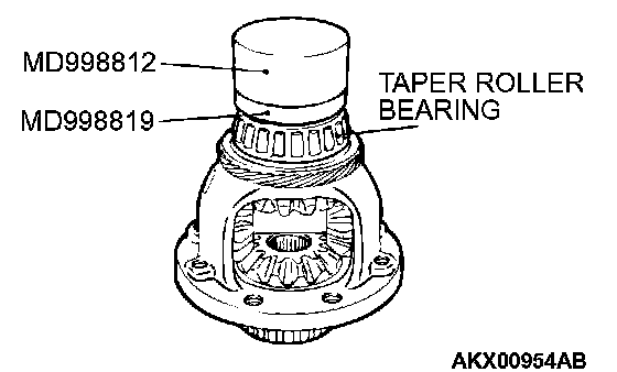 Using special tools MD998812 and MD998819, install the taper roller bearing with the press.