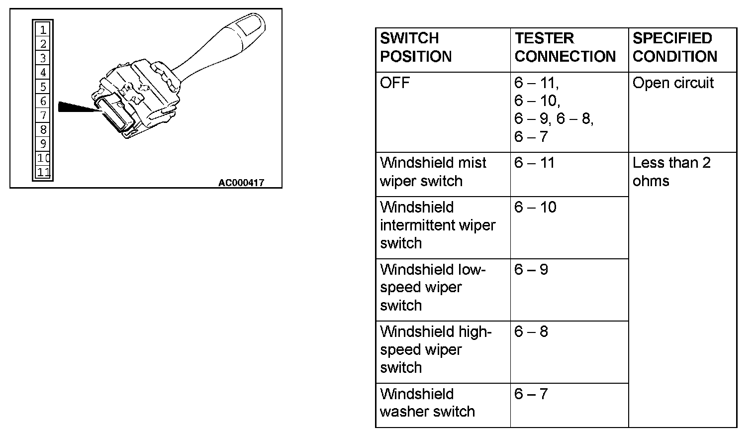 Wiper Switch: Testing and Inspection