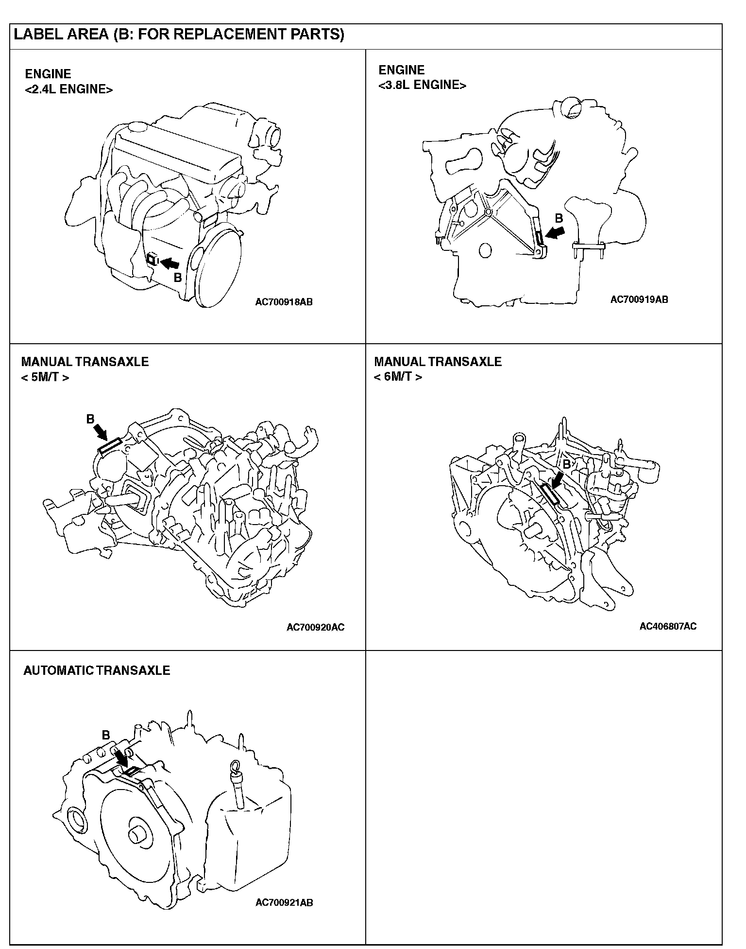The mark in the illustration is stamped to replacement ports for the engine and the transaxle.