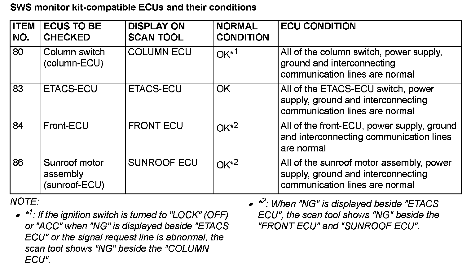 2. The following ECUs can be checked by using the scan tool MB991958 (M.U.T.-III Sub Assembly) and the SWS monitor kit.