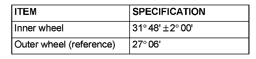 STEERING ANGLE CHECK1. Place the front wheel on a turning radius gauge and measure the steering angle.