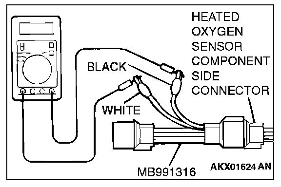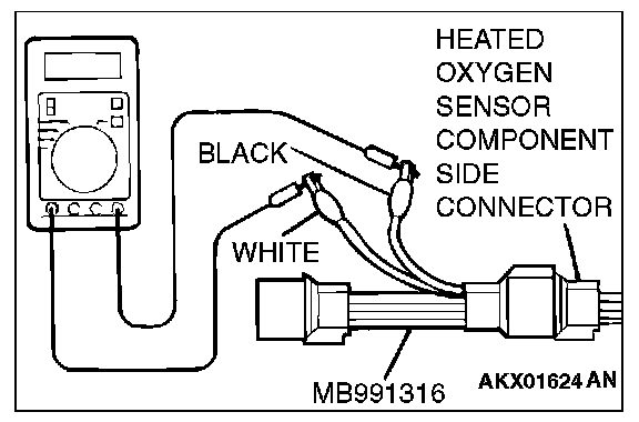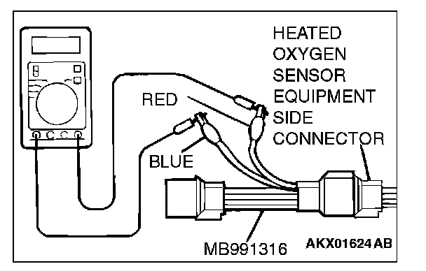 1. Disconnect the heated oxygen sensor connector and connect special tool MB991316 to the connector on the heated oxygen sensor side.
