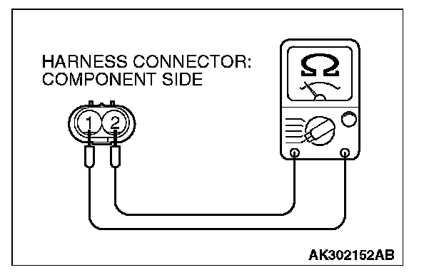 2. Measure resistance between terminal No. 1 and terminal No. 2 of the connector at the engine oil control valve side.