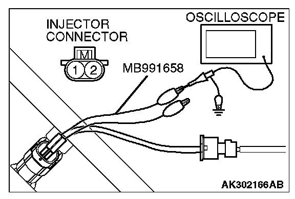 1. Disconnect the injector connector, and connect the test harness special tool (MB991658) between the separated connector. (All terminals should be connected.)
