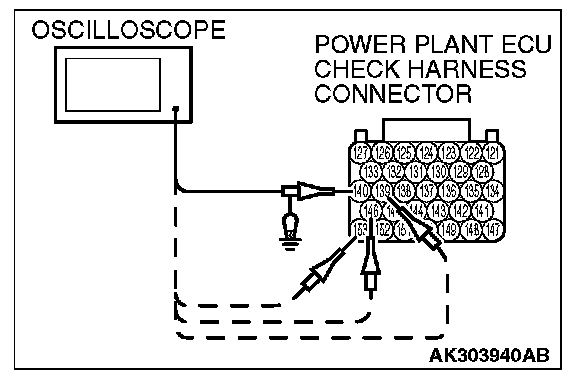 3. Connect the oscilloscope to check harness terminal No. 103. (Check the crankshaft position sensor signal wave pattern.)