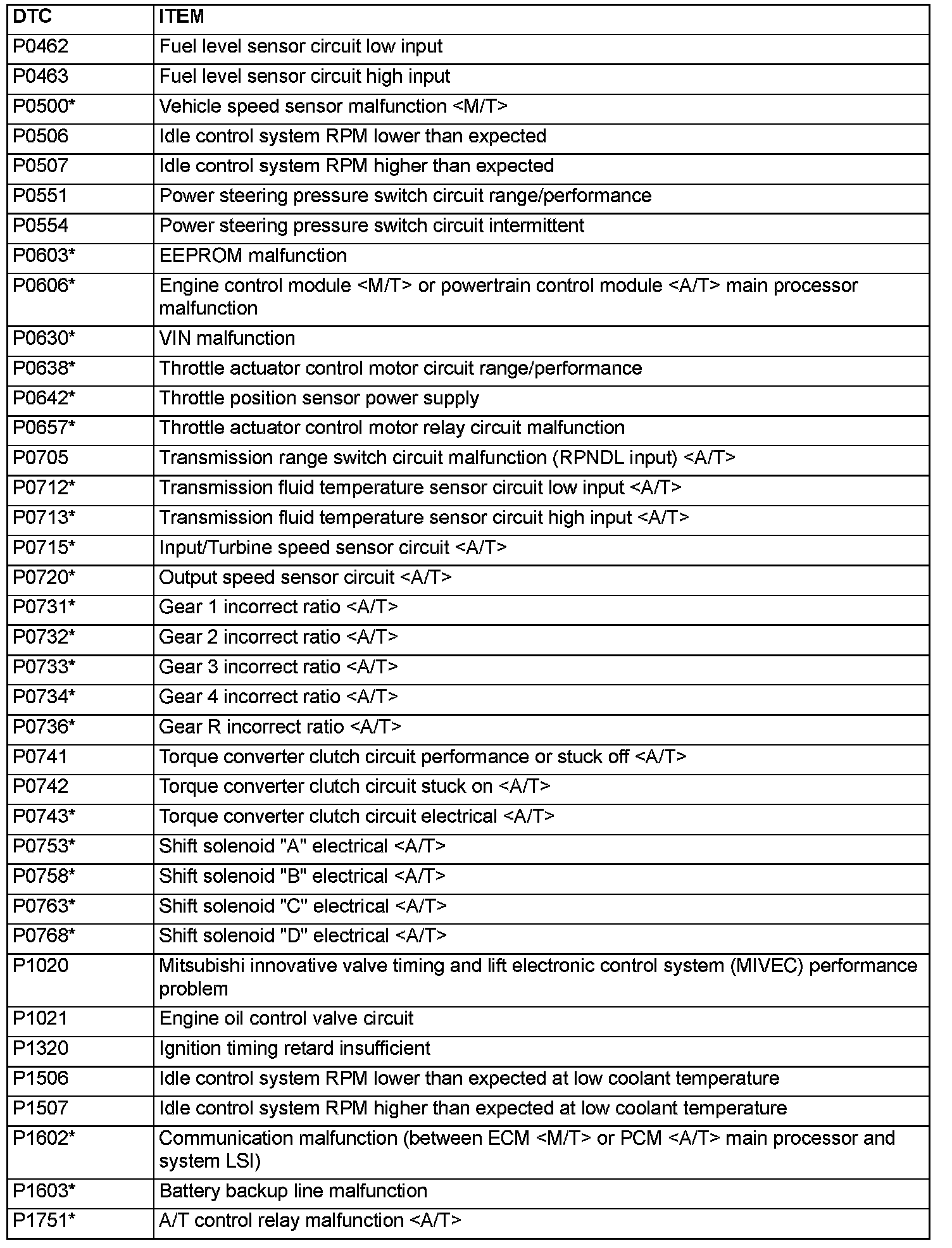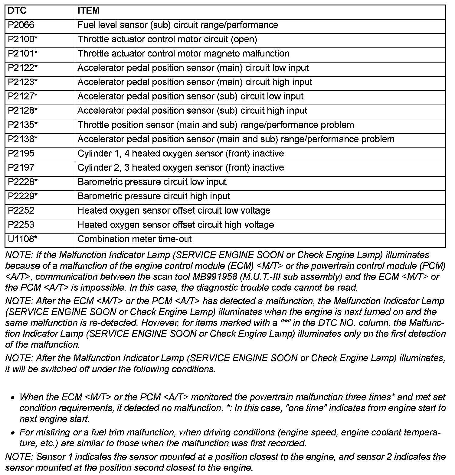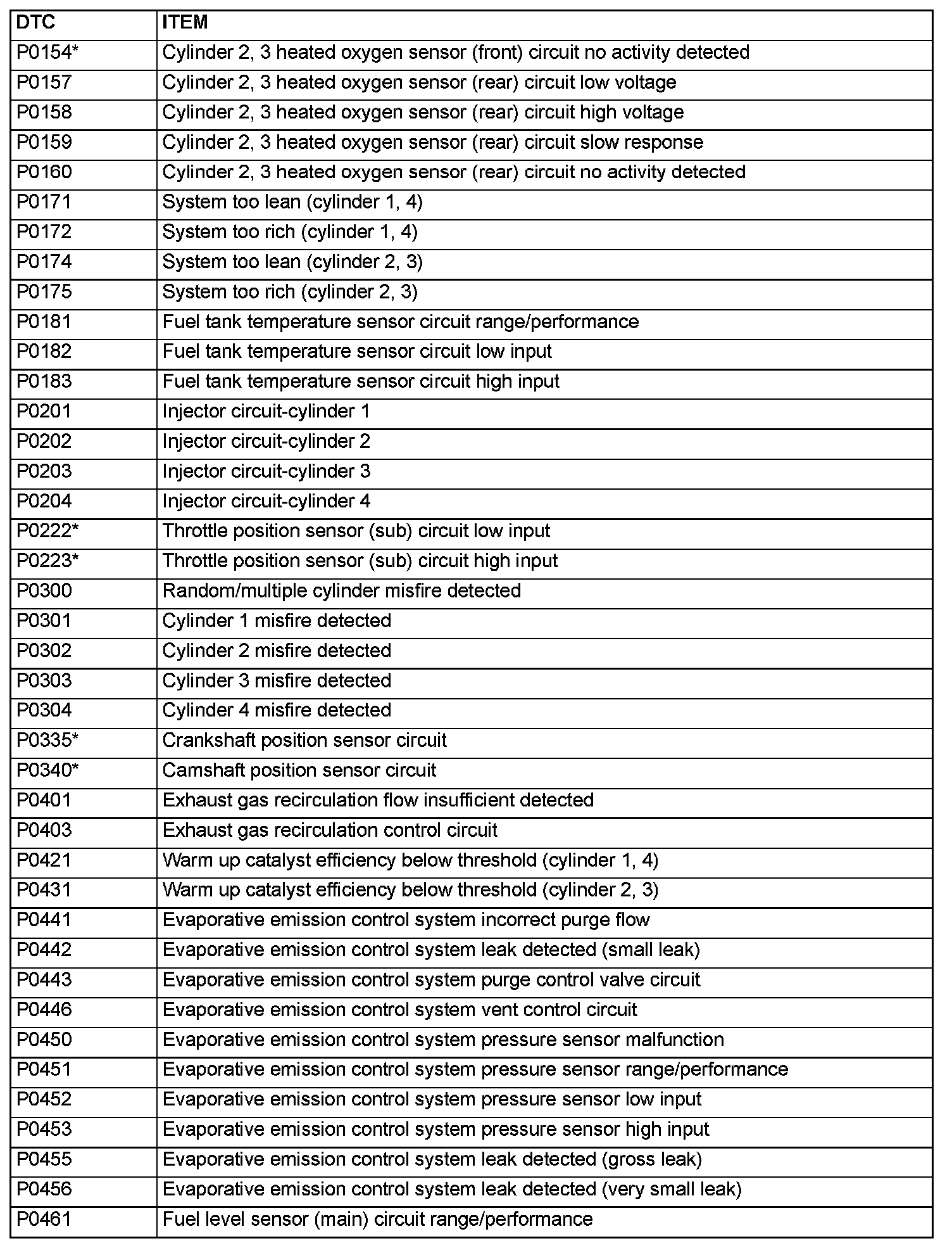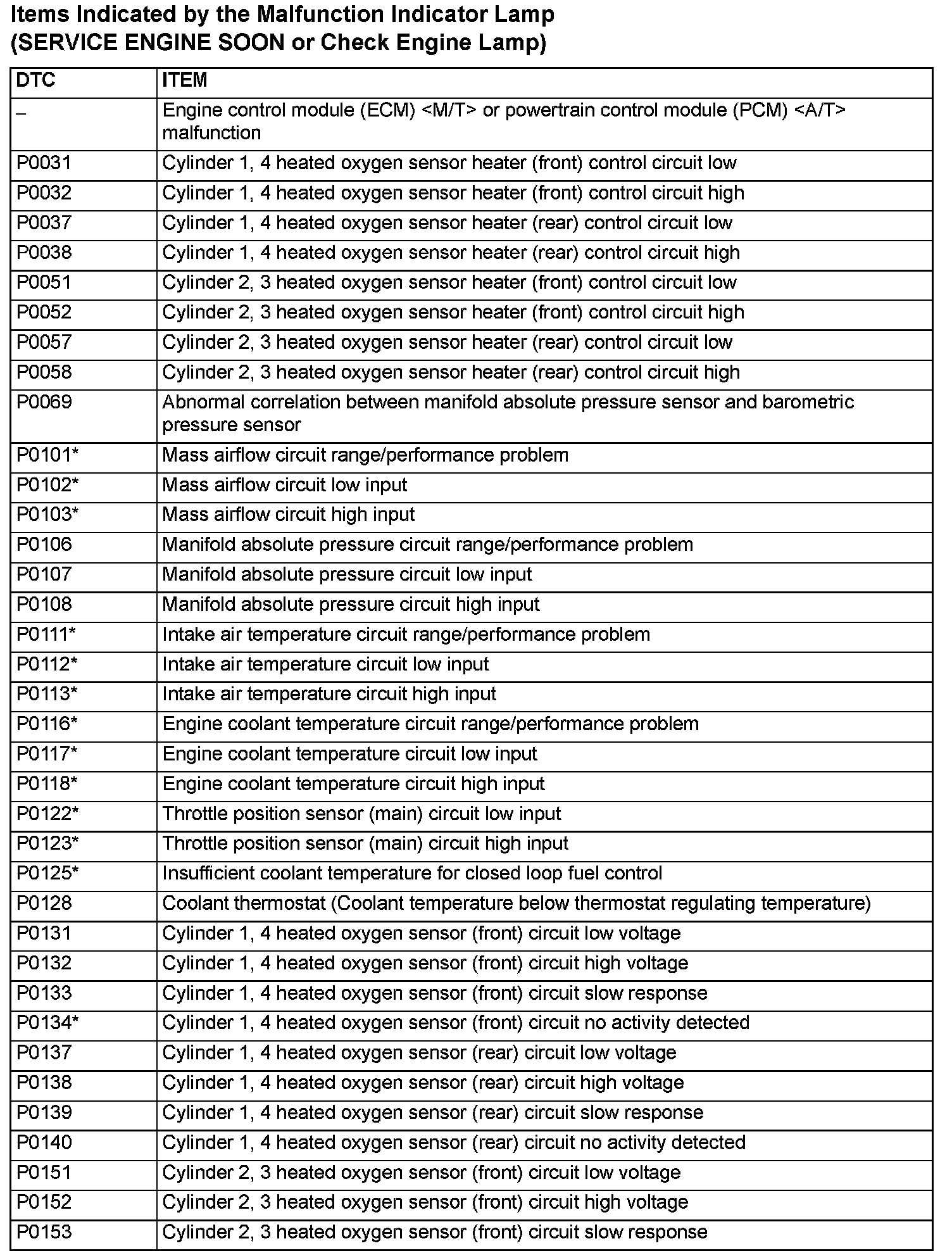 Items Indicated by the Malfunction Indicator Lamp (SERVICE ENGINE SOON or Check Engine Lamp)