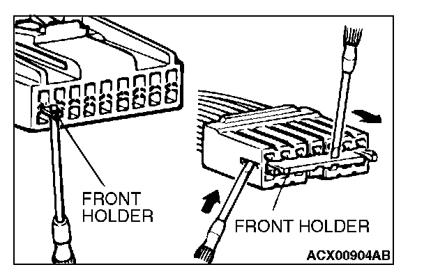 1. Insert a screwdriver [1.4 mm (0.06 inch) width] as shown in the figure, disengage the front holder, and remove it.