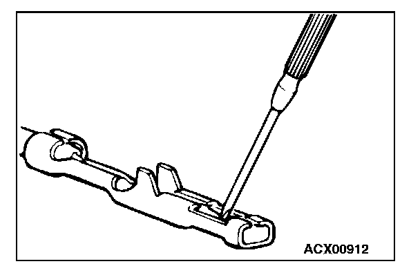3. Press the contact point to the male terminal down by holding a screwdriver [1.4 mm (0.06 inch) width] as shown in the figure.