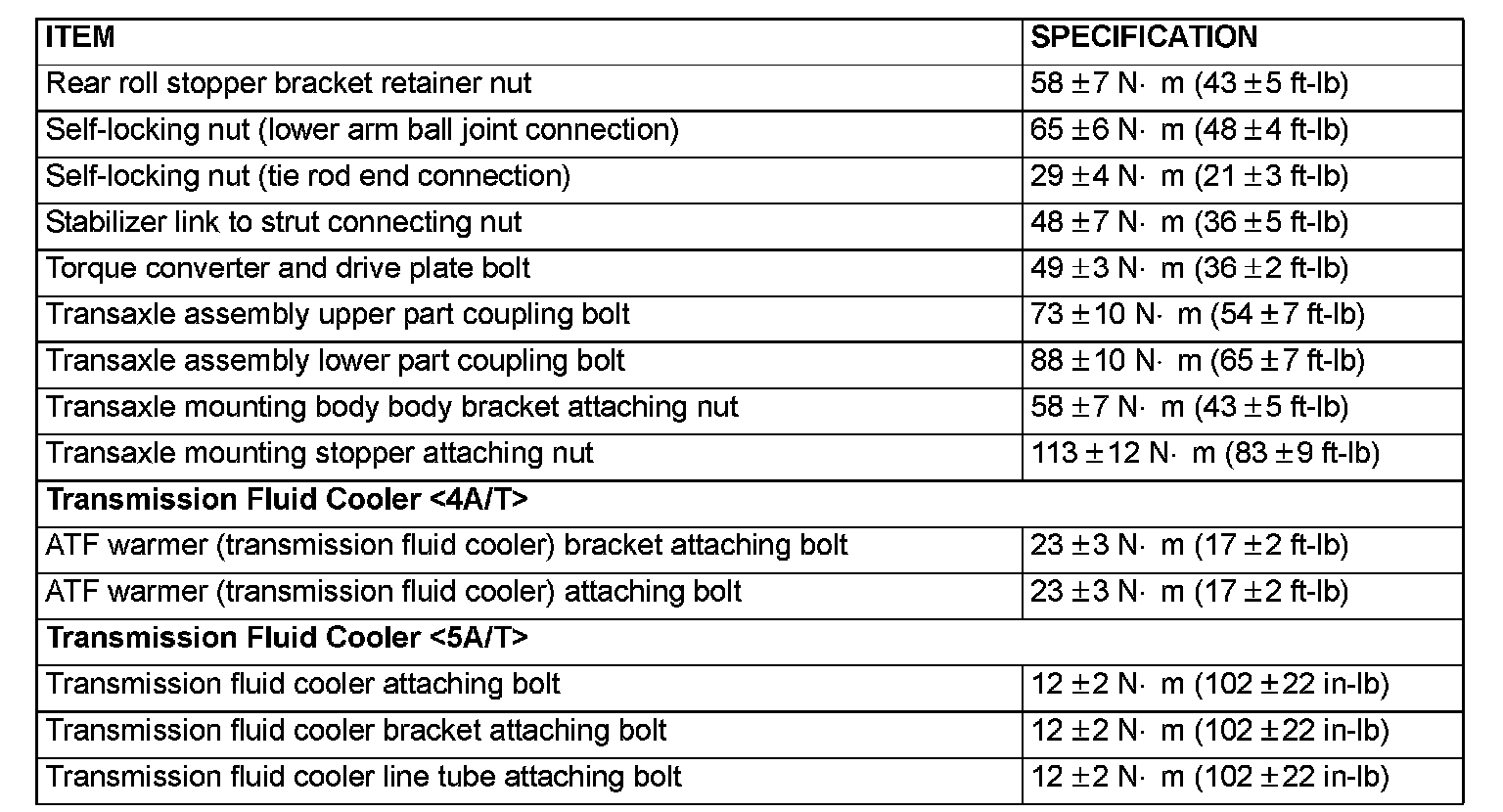 FASTENER TIGHTENING SPECIFICATIONS