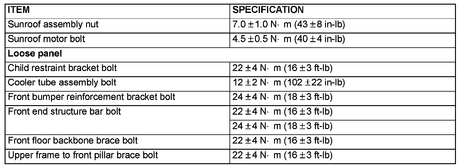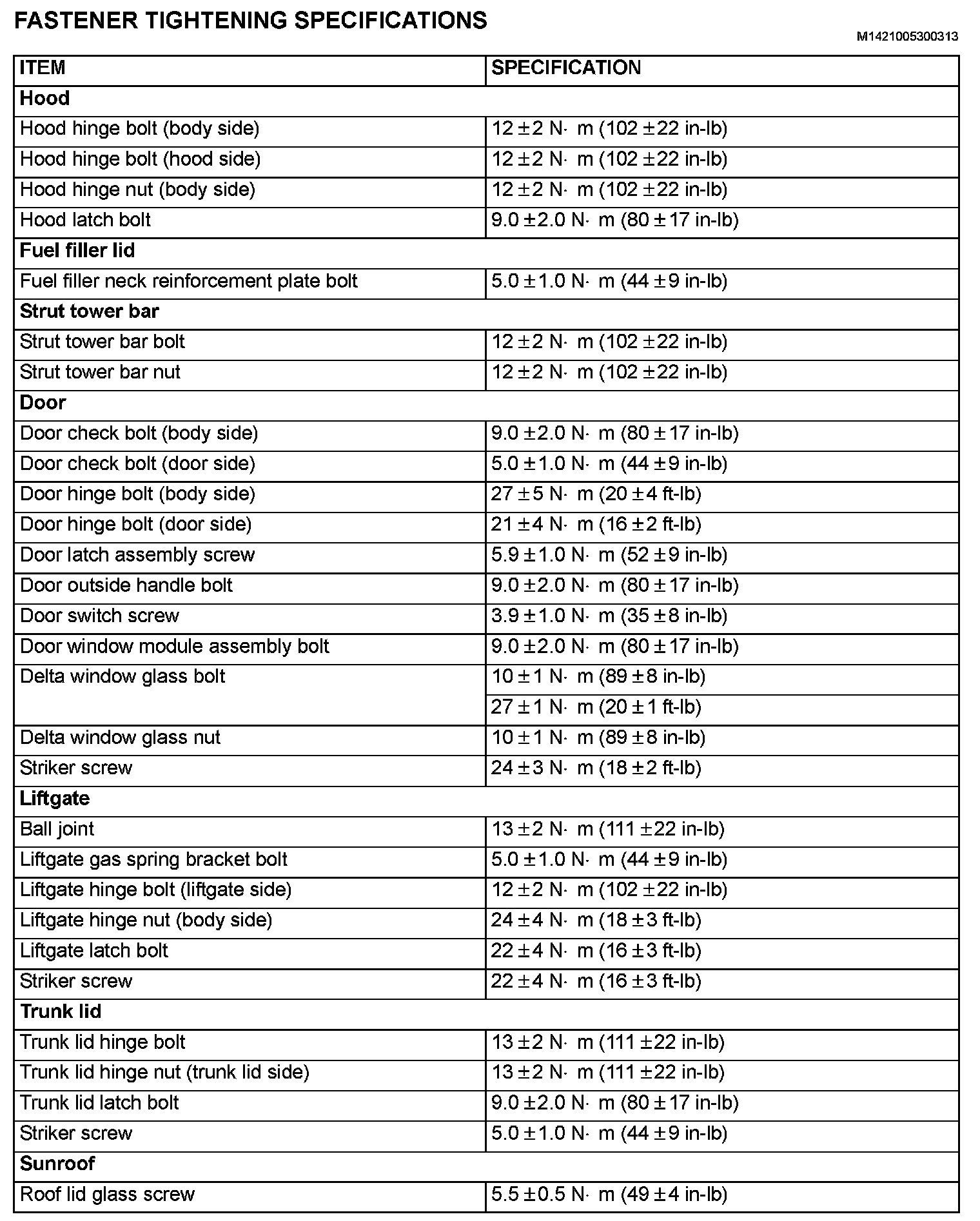 Fastener Tightening Specifications