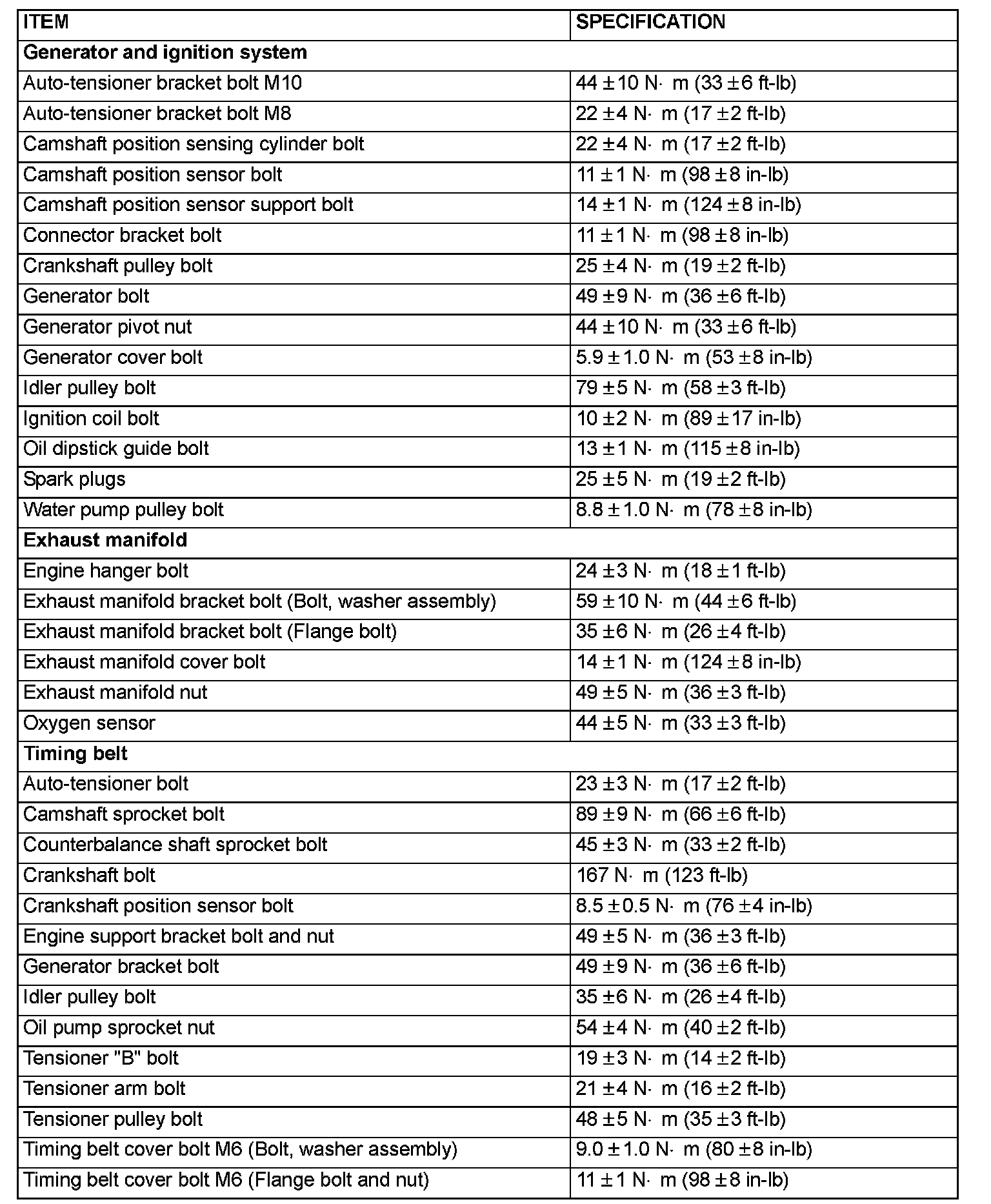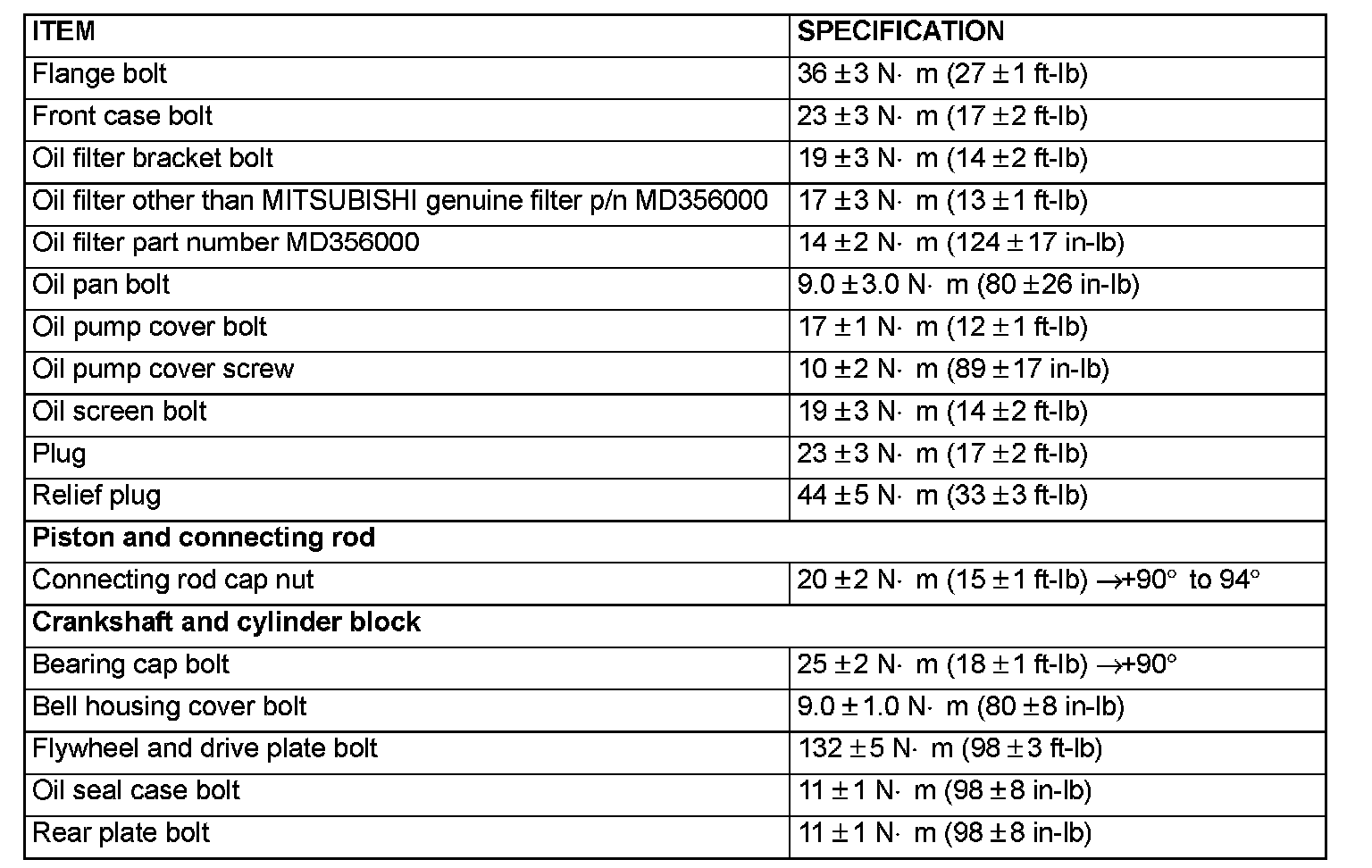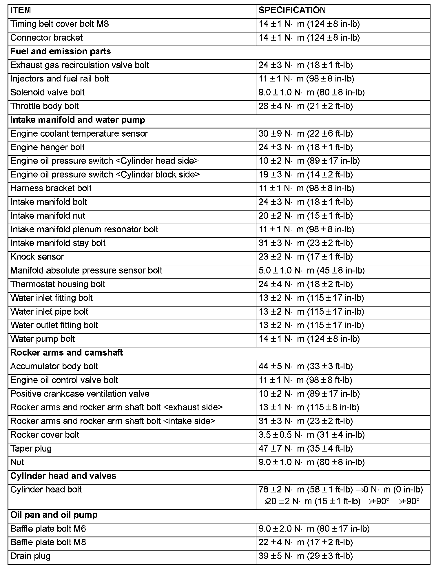 Fastener Tightening Specifications