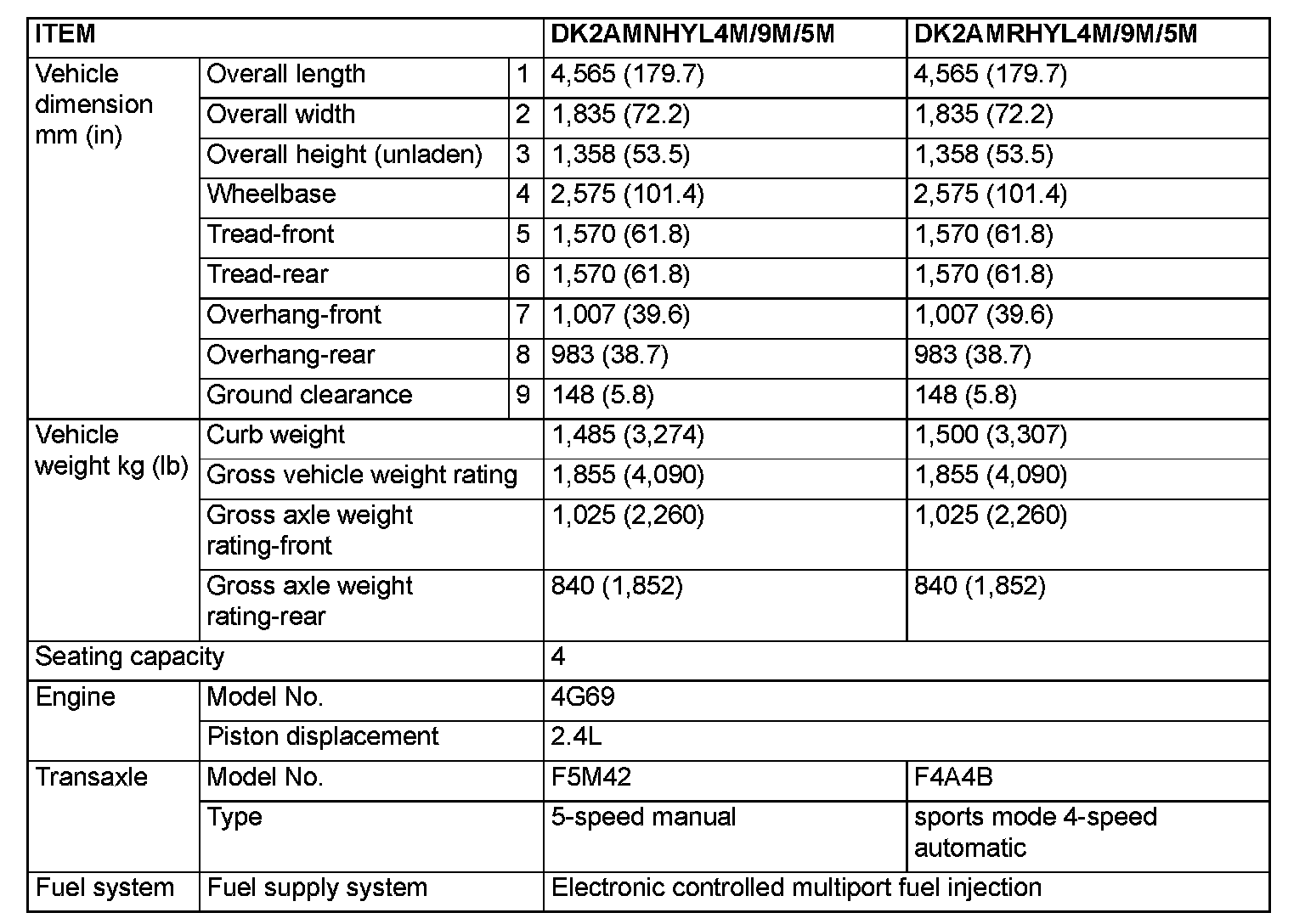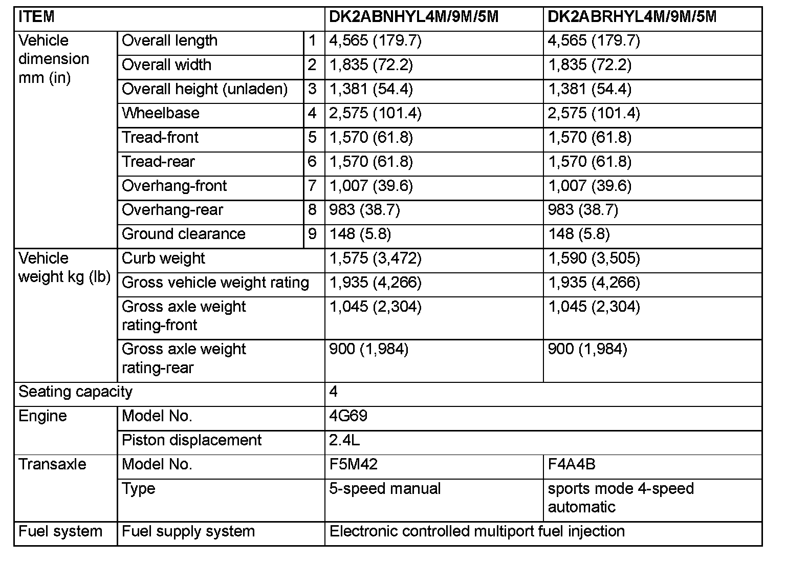 GENERAL SPECIFICATIONS (2.4L ENGINE)
