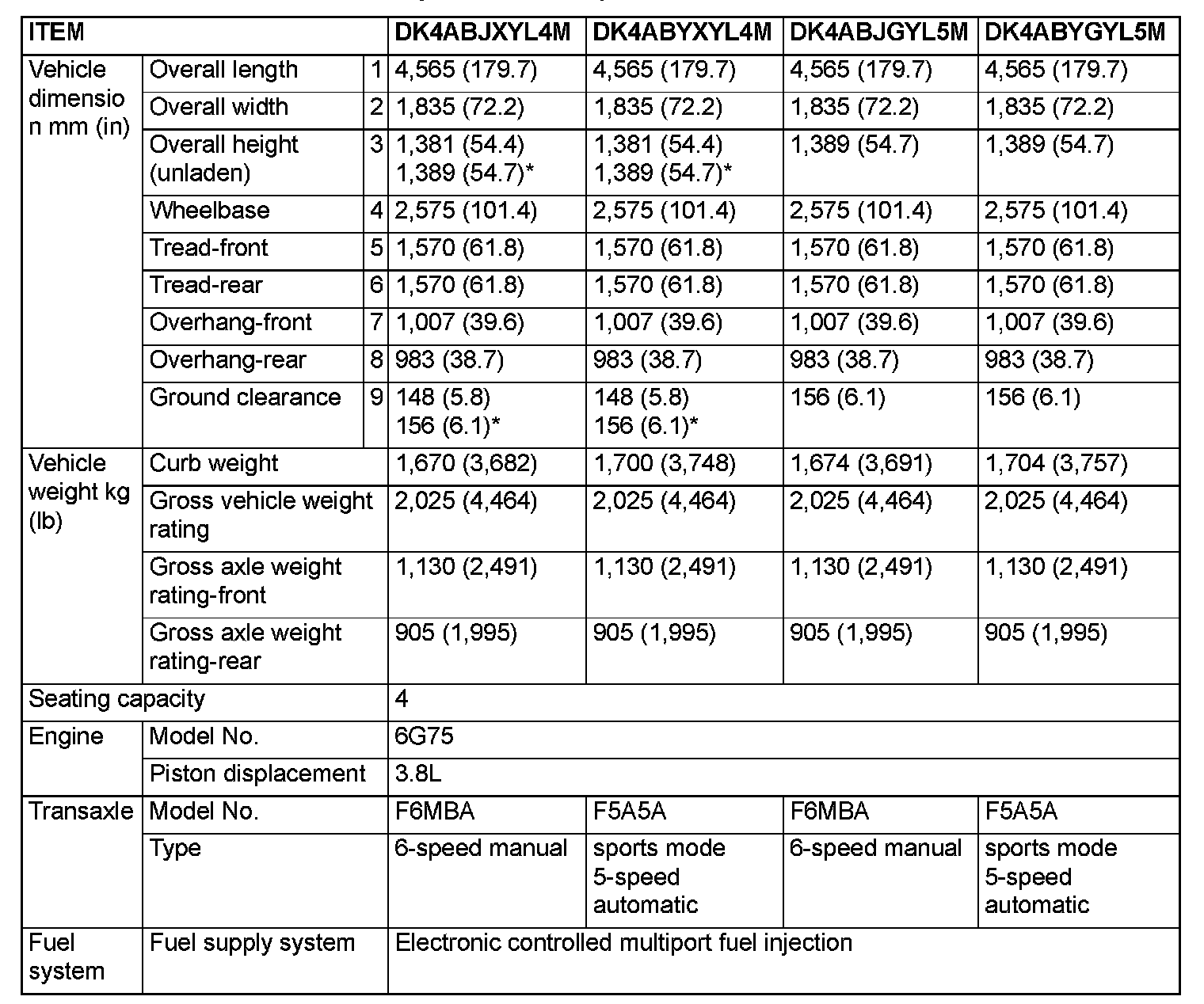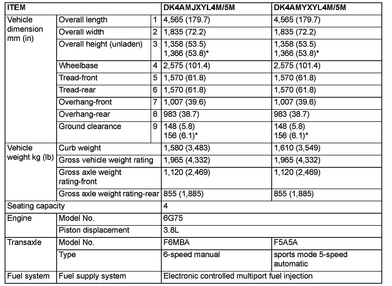 GENERAL SPECIFICATIONS (3.8L ENGINE)