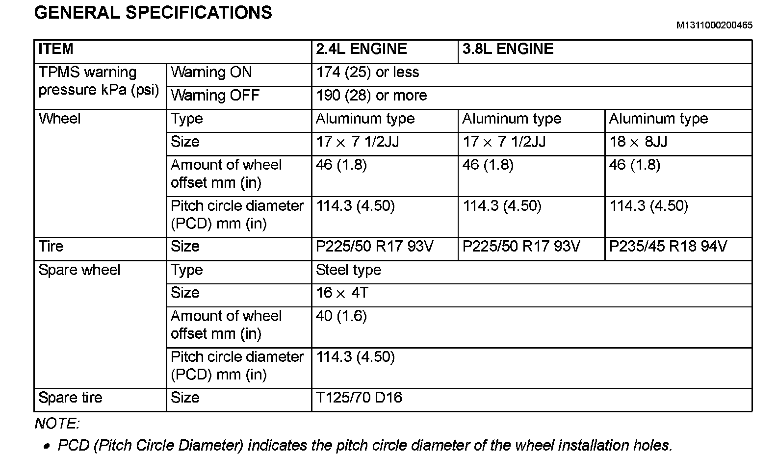 GENERAL SPECIFICATIONS: