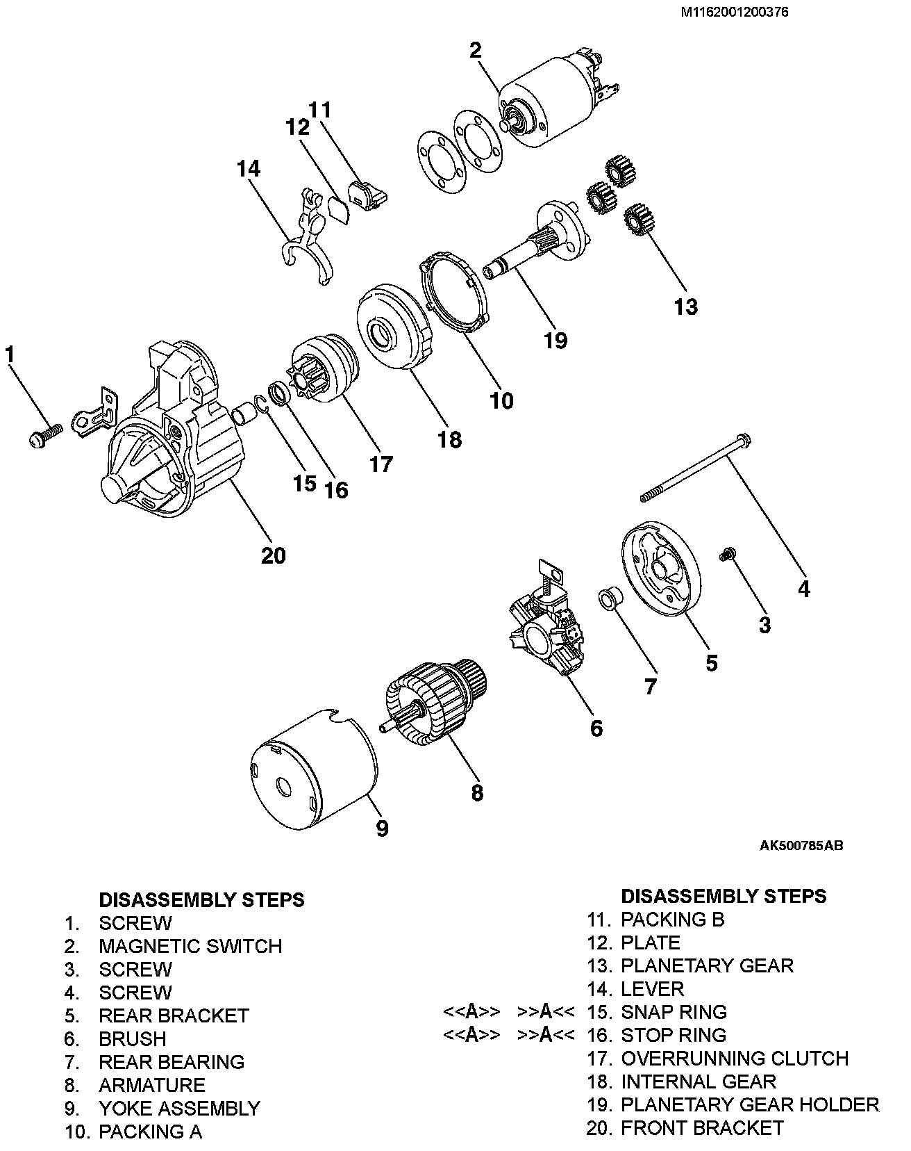 STARTER MOTOR ASSEMBLYDisassembly Steps 1-20: