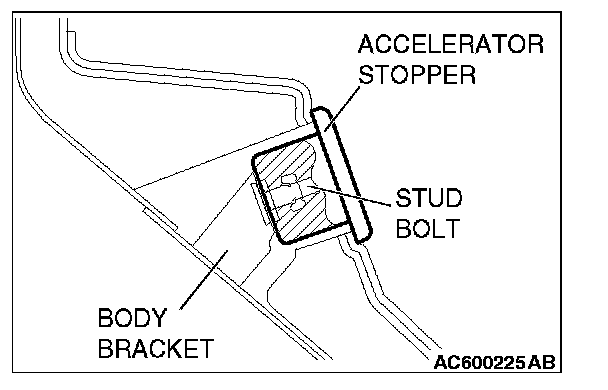 2. Install the accelerator stopper securely by turning it clockwise until its underside contacts with the body bracket as shown in the figure.