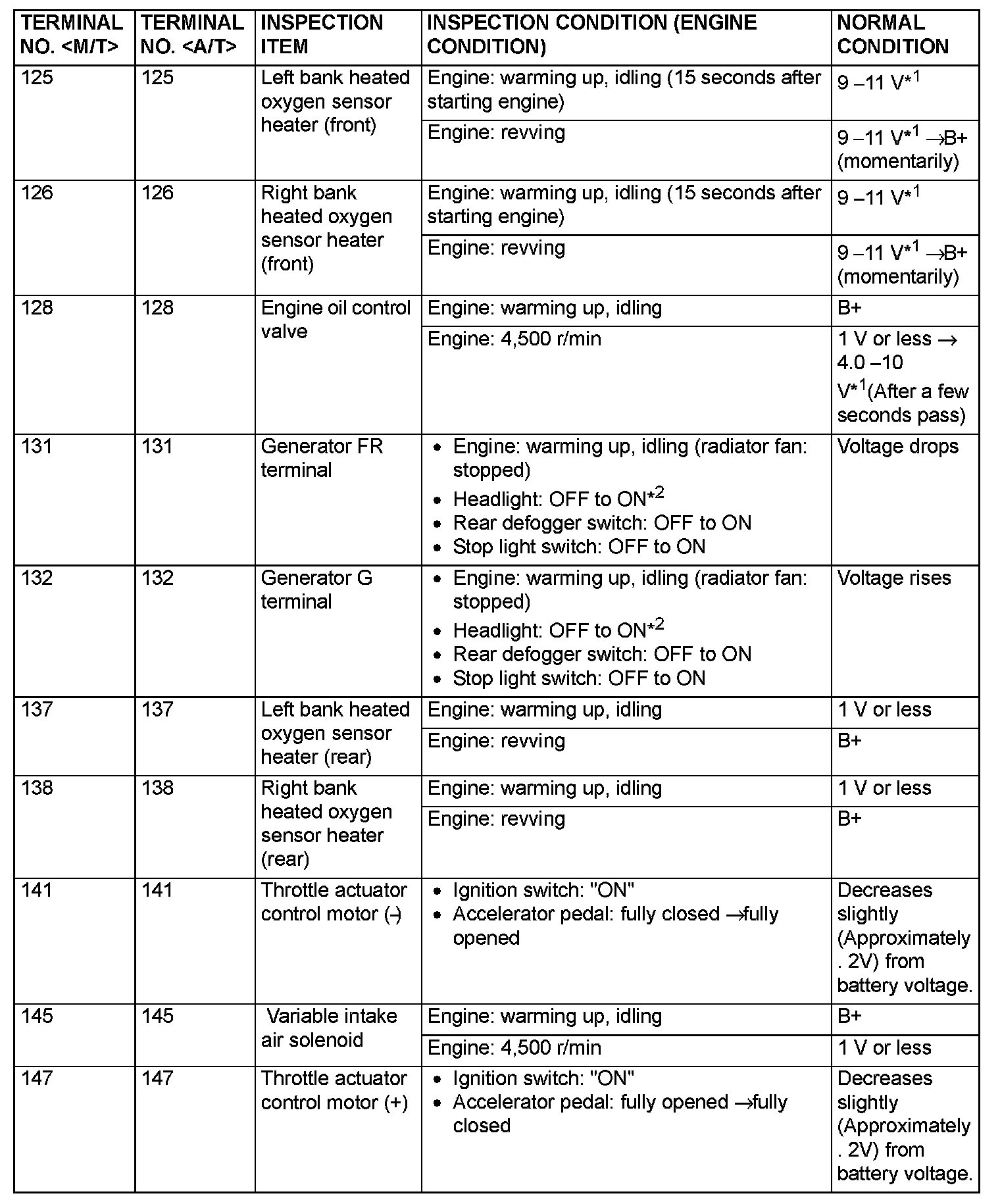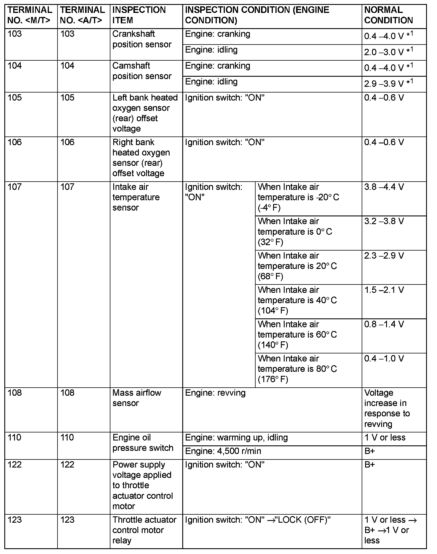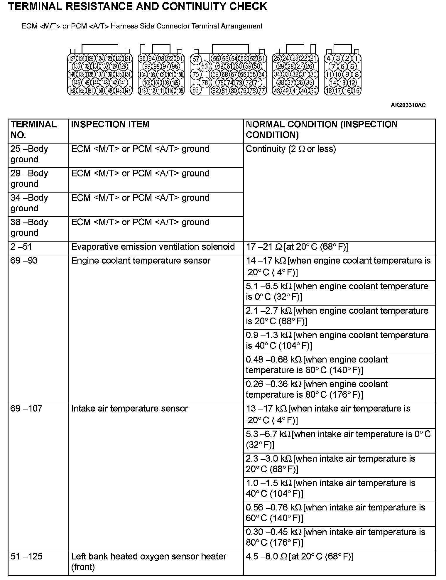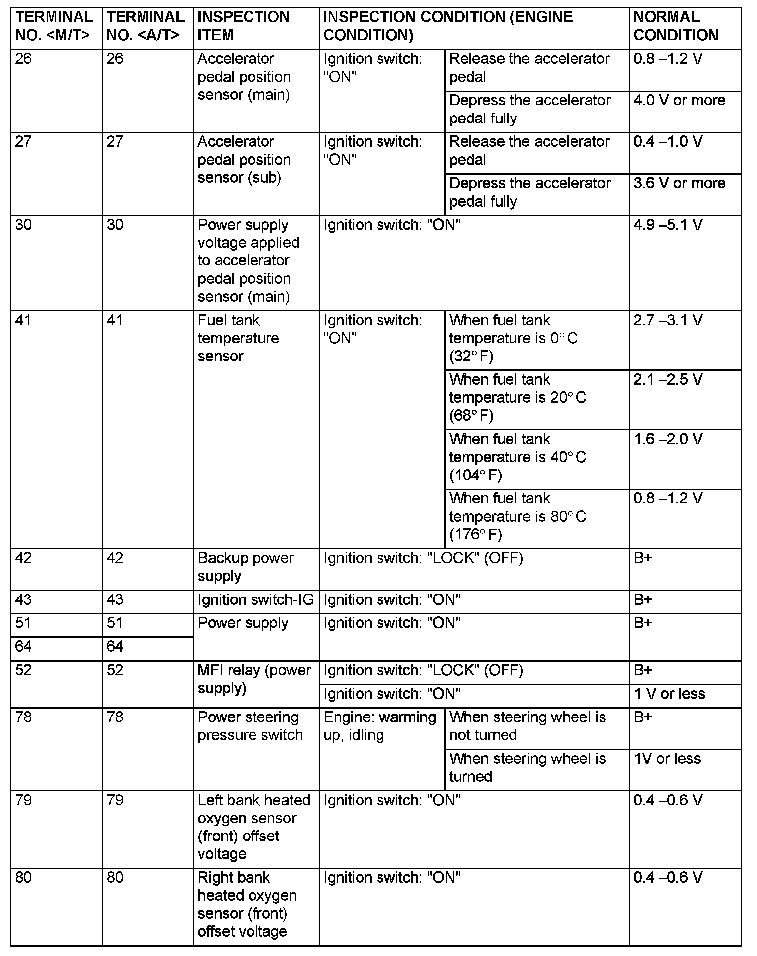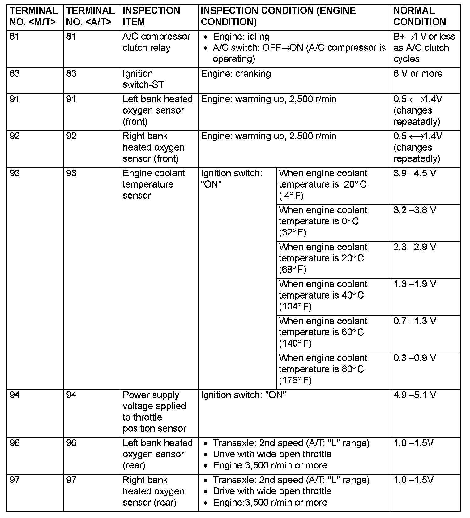 CHECK AT THE ENGINE CONTROL MODULE (ECM) [M/T] OR THE POWERTRAIN CONTROL MODULE (PCM) [A/T]