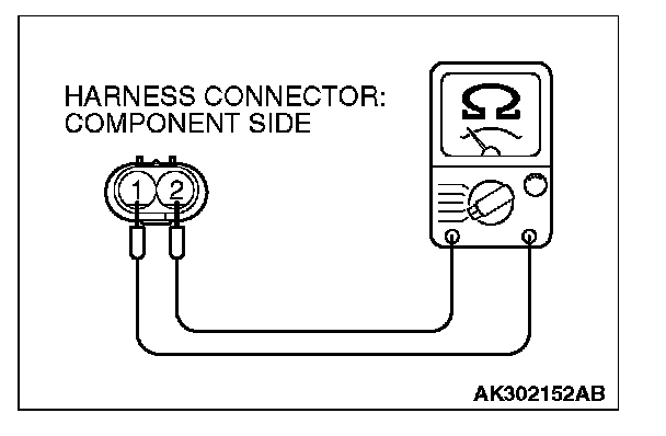2. Measure resistance between terminal No. 1 and terminal No. 2 of the connector at the engine oil control valve side.