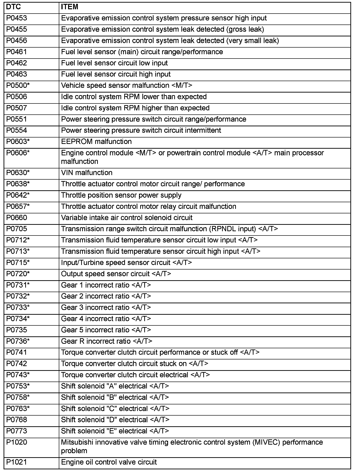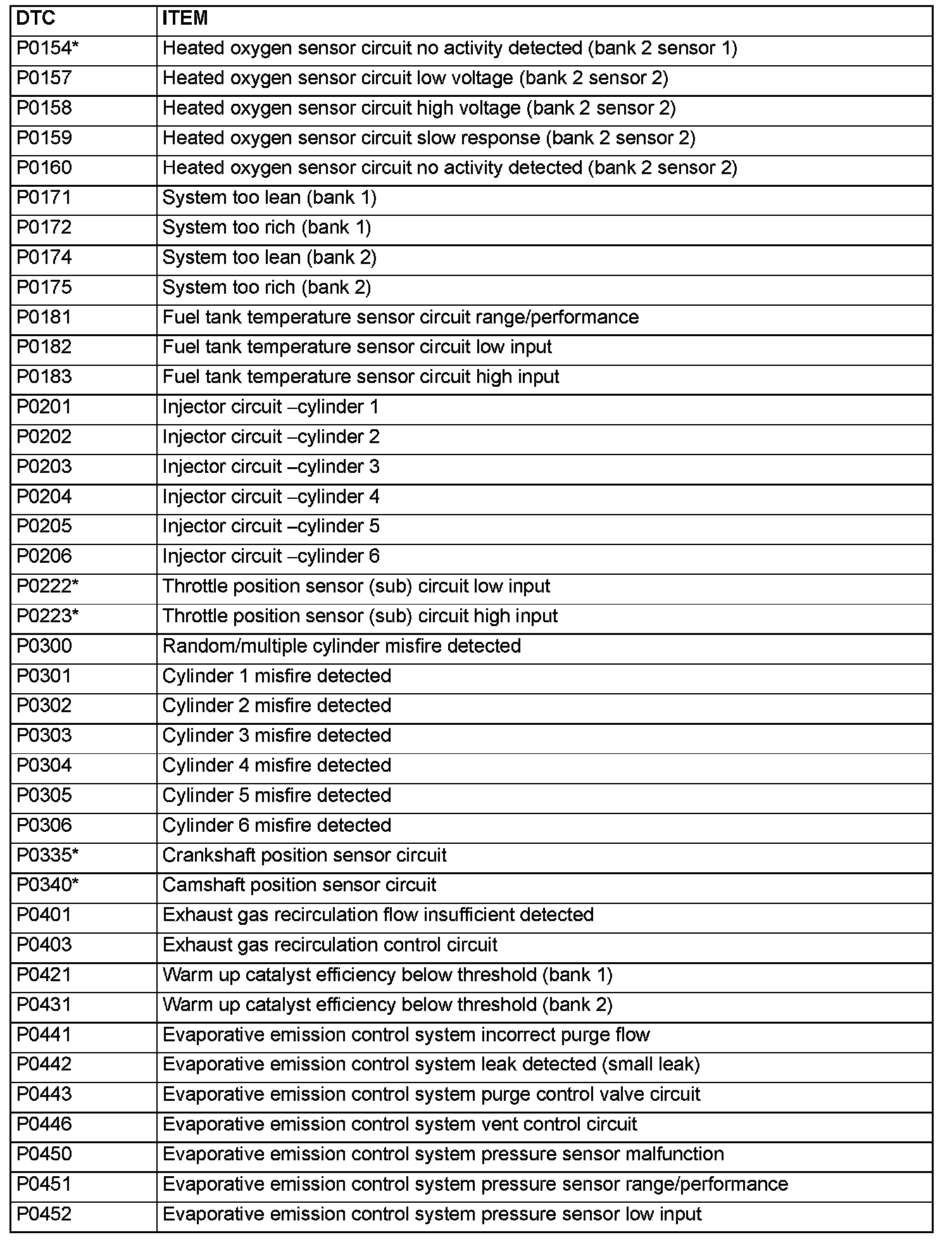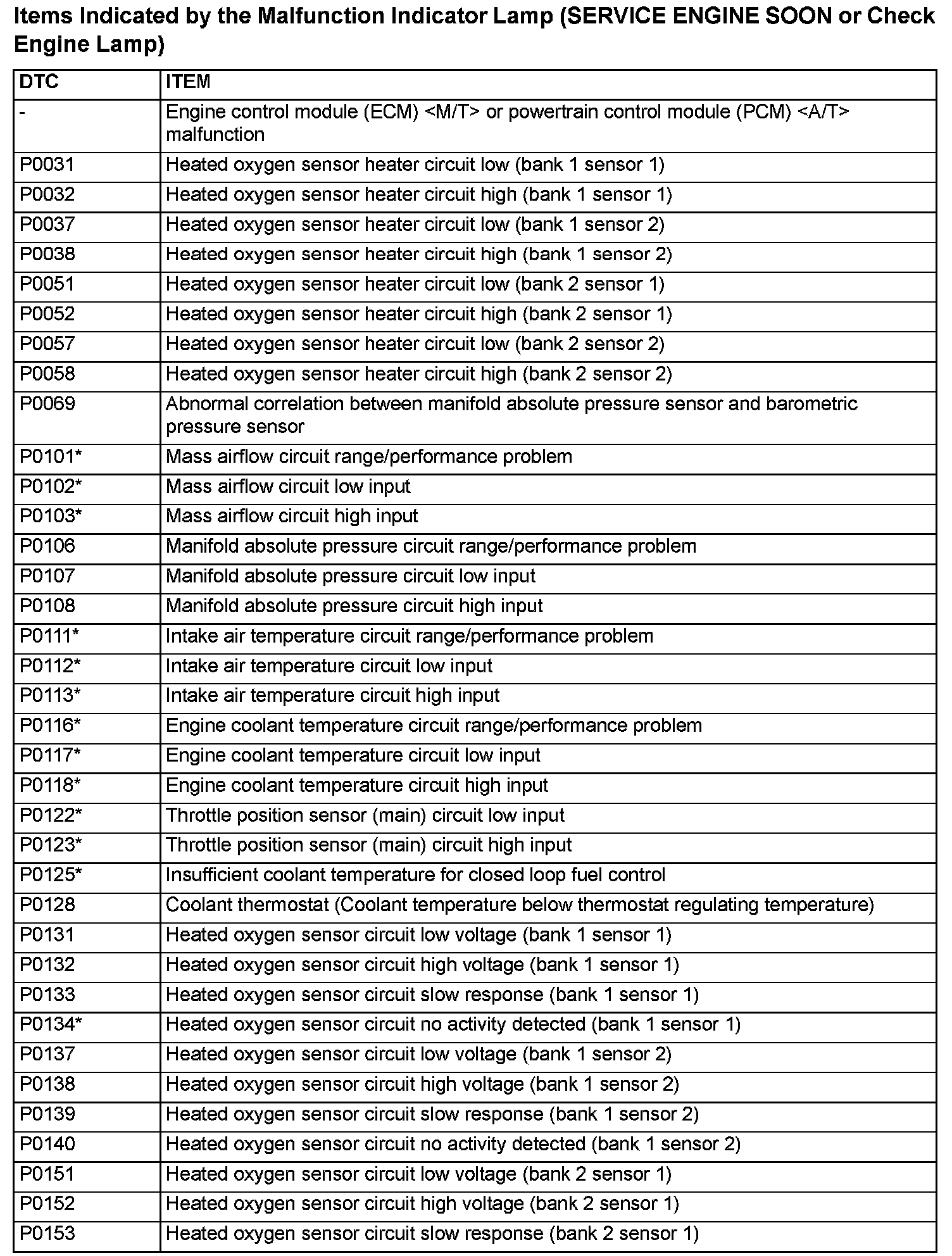 Items Indicated by the Malfunction Indicator Lamp (SERVICE ENGINE SOON or Check Engine Lamp)