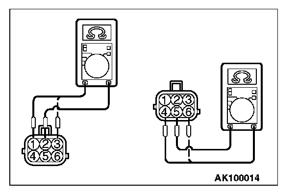 4. Measure the resistance between terminal No.5 and either terminal No.6 or terminal No.4 of the connector at the EGR valve.