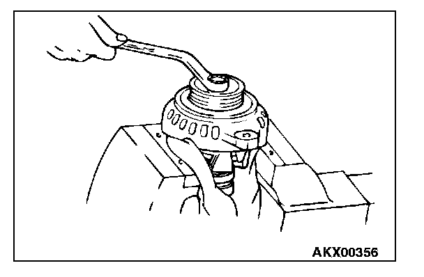 Set the pulley upward, clamp the rotor in a vise, and remove the pulley.