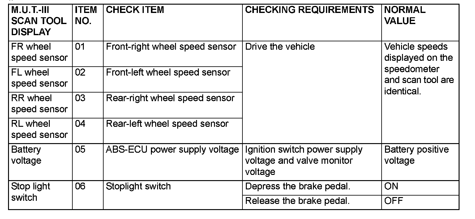 The following items can be read by the scan tool from the ABS-ECU input data.