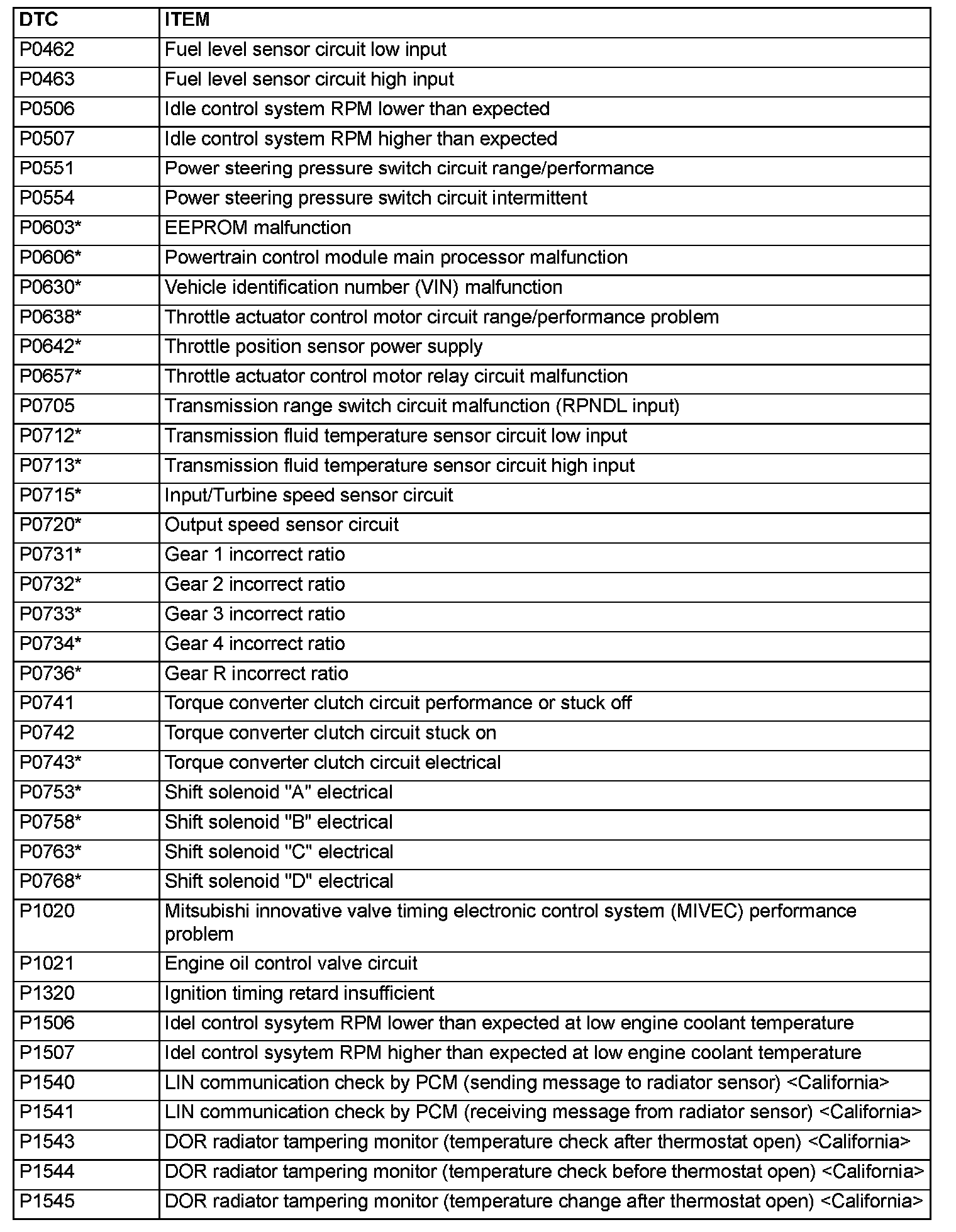 Among the on-board diagnostic items, Malfunction Indicator Lamp (SERVICE ENGINE SOON or Check Engine Lamp) illuminates to notify the driver of an emission control malfunction. However, when an irregular signal returns to normal and the powertrain control module judges that it has returned to normal, the Malfunction Indicator Lamp (SERVICE ENGINE SOON or Check Engine Lamp) will switch off.