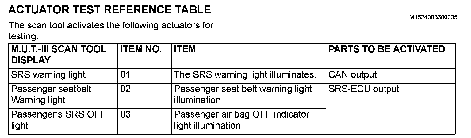 Actuator Test Reference Table: