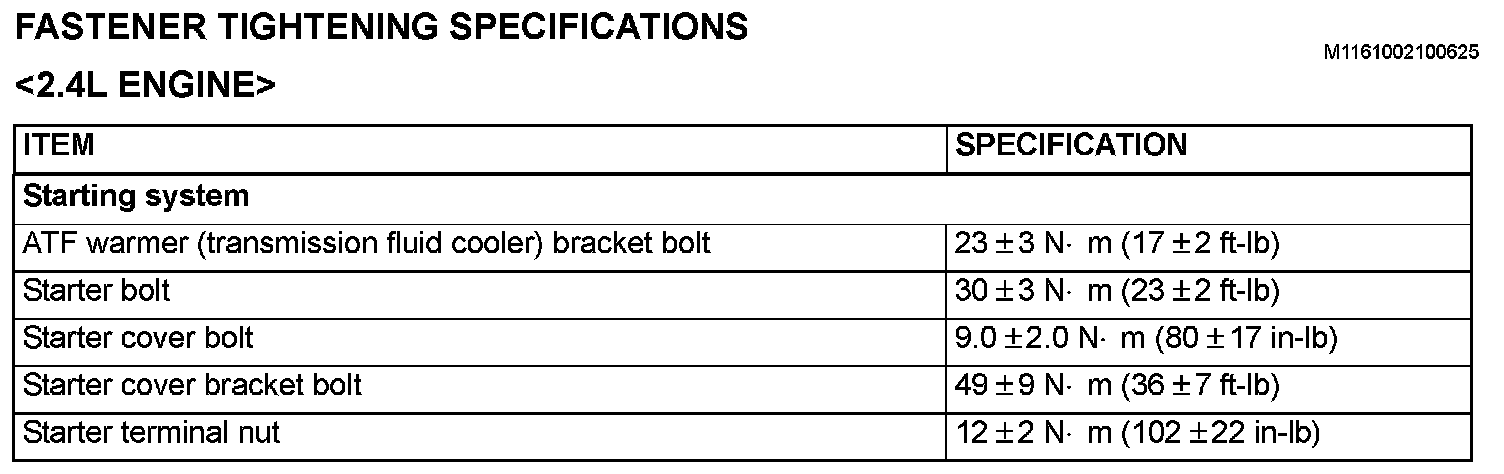 Fastener Tightening Specifications - Starting System: