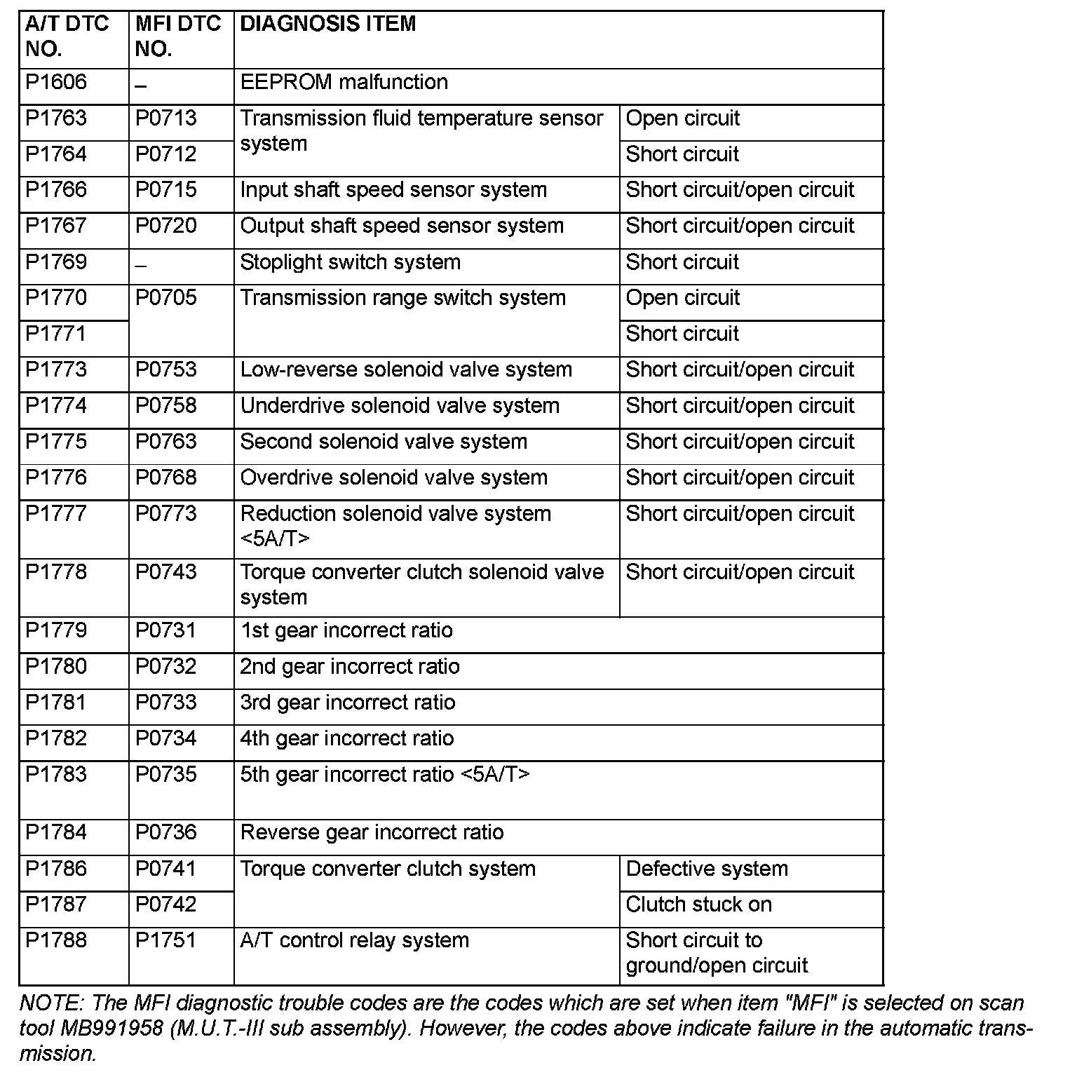 DIAGNOSTIC TROUBLE CODE CHARTCAUTION: During diagnosis, a DTC code associated with other system may be set when the ignition switch is turned on with connector(s) disconnected. On completion, confirm all systems for DTC code(s). If DTC code(s) are set, erase them all.
