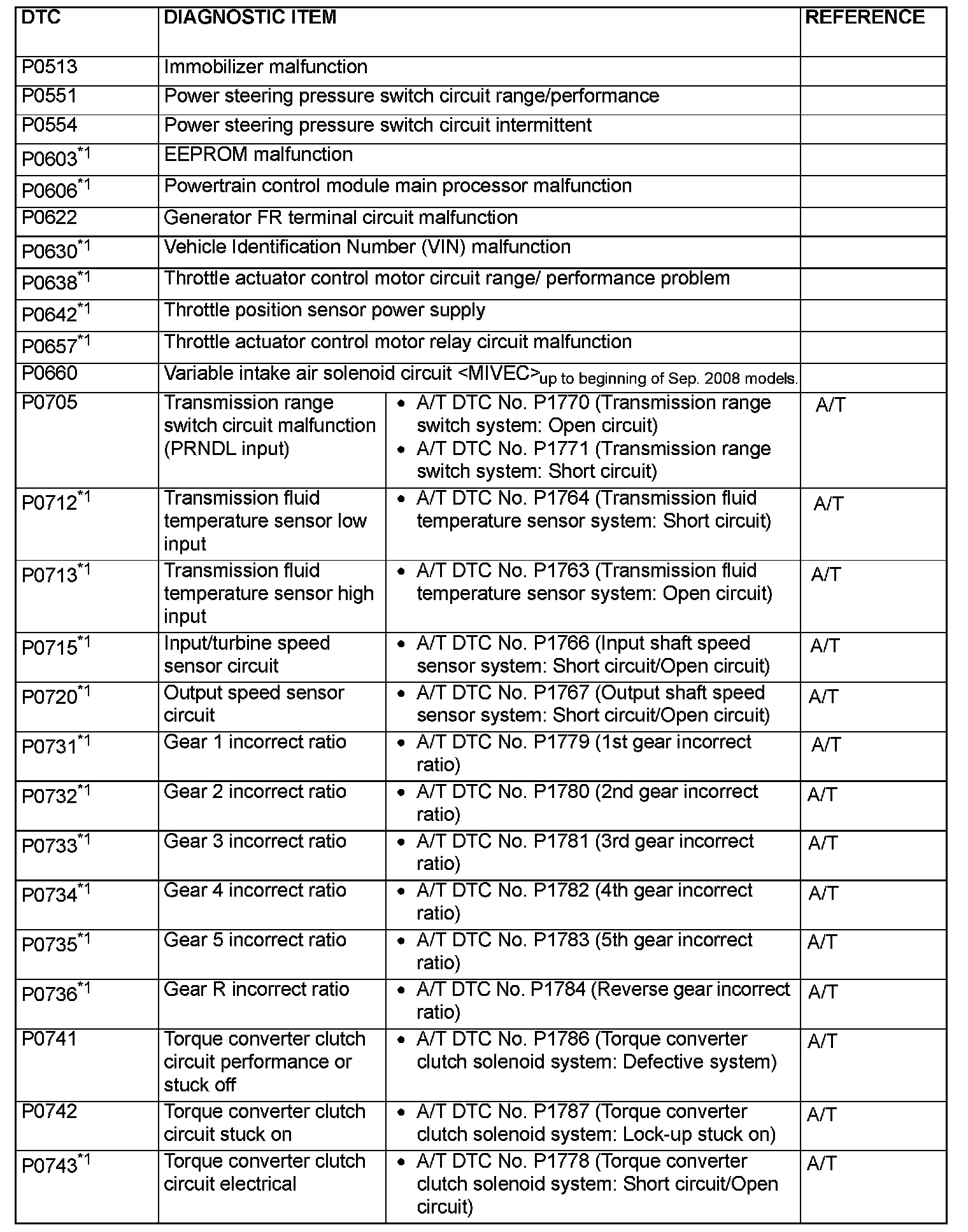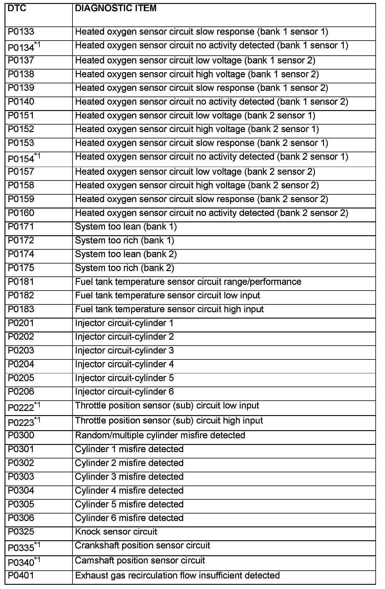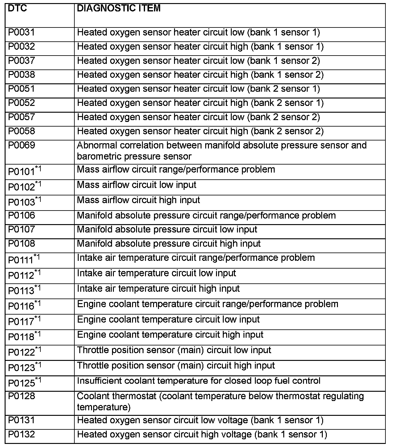 - After the PCM detects a malfunction, a diagnostic trouble code is recorded the next time the engine is started and the same malfunction is re-detected. However, for items marked with a "*1", the diagnostic trouble code is recorded on the first detection of the malfunction.