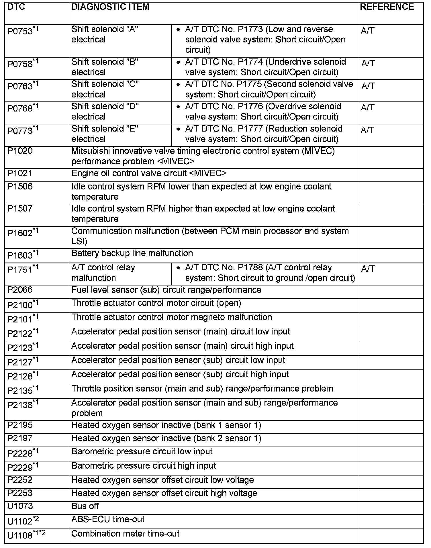 - *2: When the diagnosis codes relating to the CAN communication error are output, make sure of the vehicle equipment. When the vehicle is not equipped with the system the PCM communications to, the diagnosis code is always output. This is not abnormal.