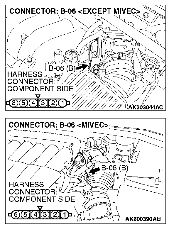STEP 2. Check harness connector B-06 at throttle position sensor for damage.