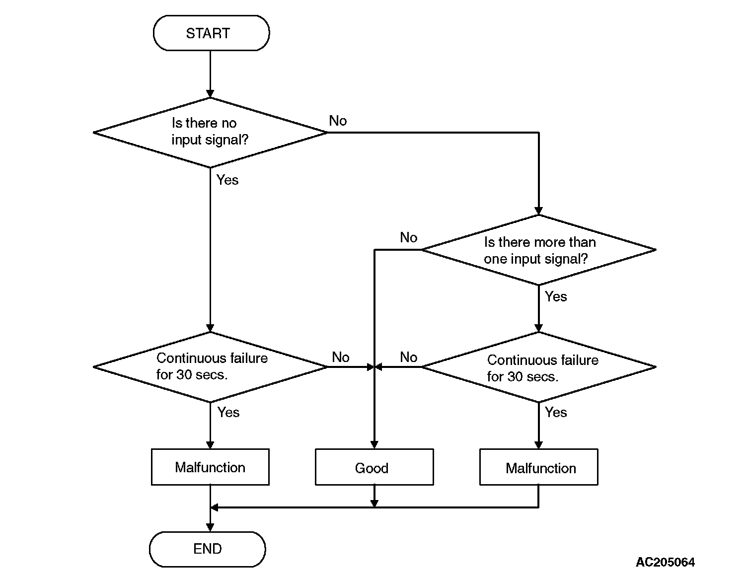 ^ If two types or more of signals are input from transmission range switch for more than 30 seconds, PCM judges that transmission range switch has a failure.