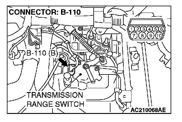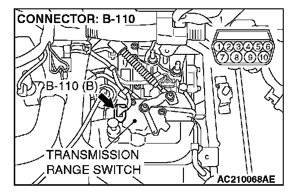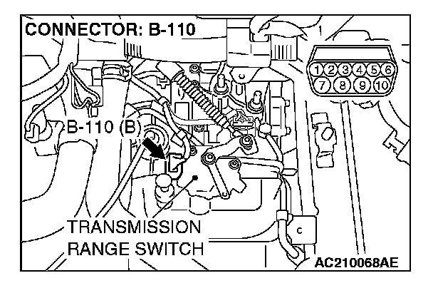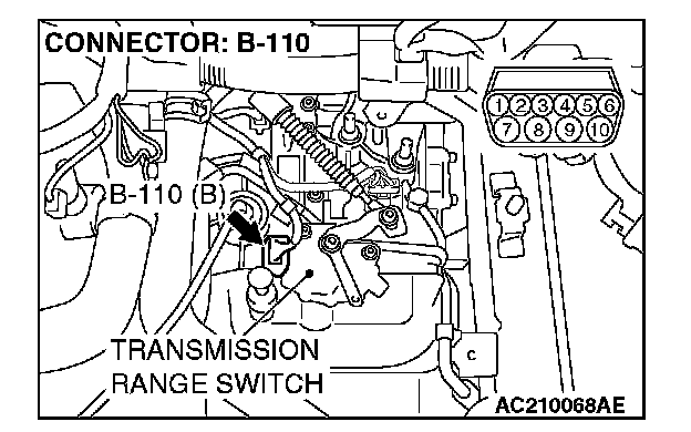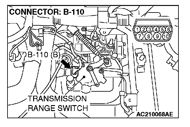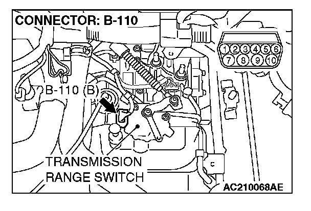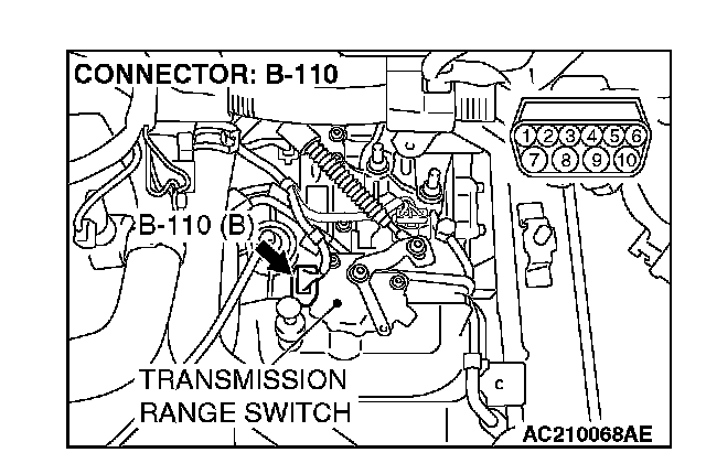 STEP 2. Check transmission range switch connector B-110 for loose, corroded or damaged terminals, or terminals pushed back in the connector.