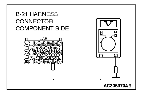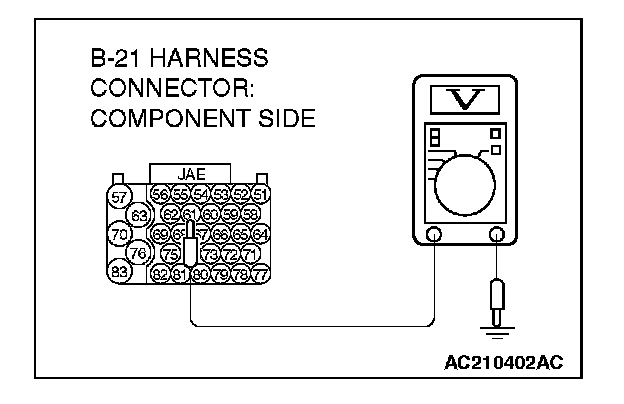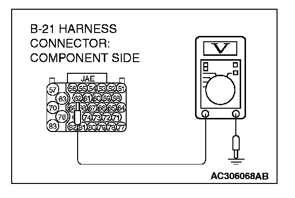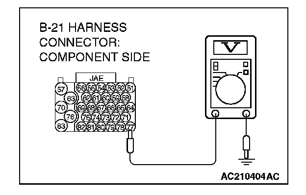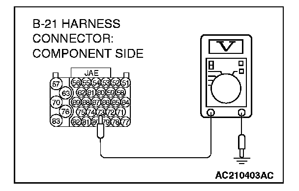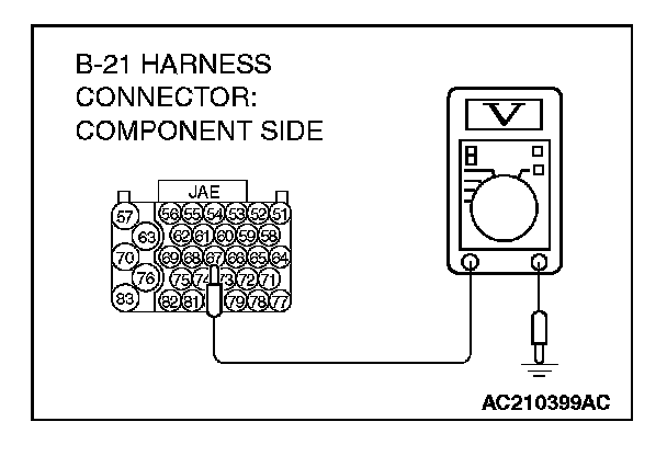 STEP 4. Measure the transmission range switch output voltage at PCM connector B-21 by using check harness special tool MB991923. ("P" position)