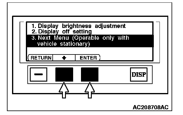 3. Choose "Next Menu (Operable only with vehicle stationary)" by pressing function button switch 2, and then press function button switch 3 (ENTER).