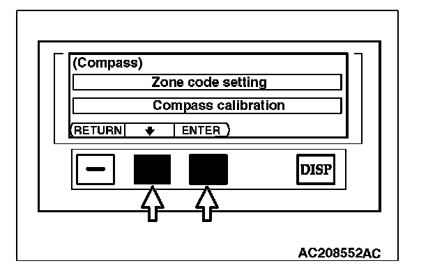 4. The compass setting screen is called up. Choose "compass calibration" by pressing function button switch 2, and then press function button switch 3 (ENTER).