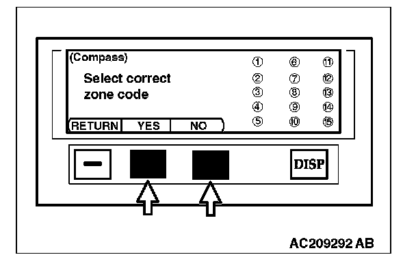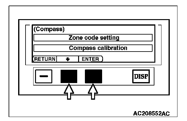 1. Choose "zone code setting" by pressing function button switch 2 on the compass selection screen, and press function button switch 3 (ENTER).