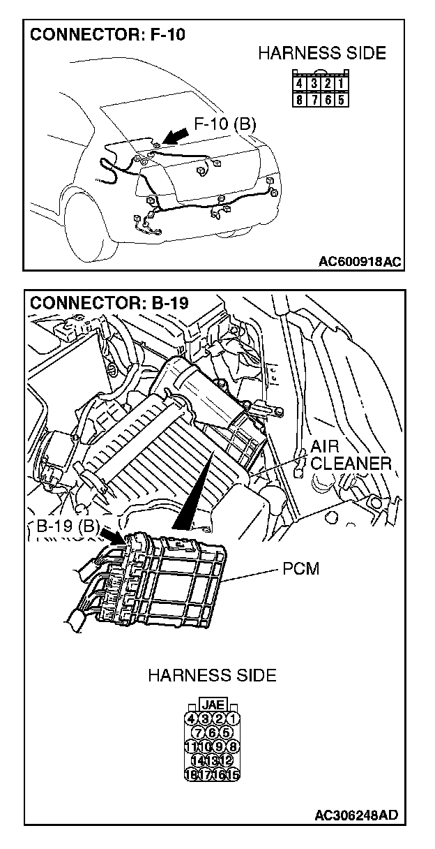 STEP 5. Check navigation unit connector F-10 and power train control module connector B-19 for loose, corroded or damaged terminals, or terminals pushed back in the connector.
