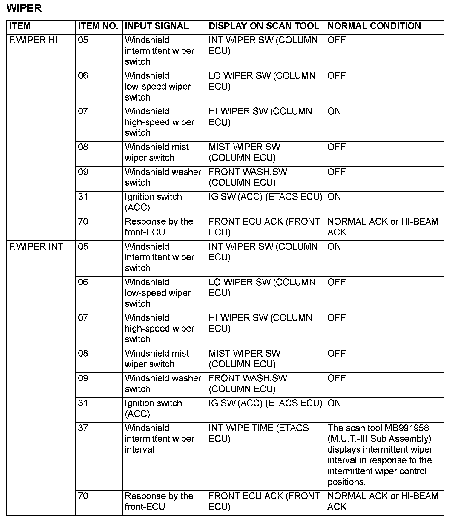 Function Diagnosis - Wiper (Part 2):