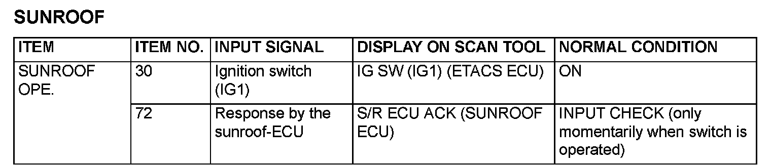 Function Diagnosis - Sunroof: