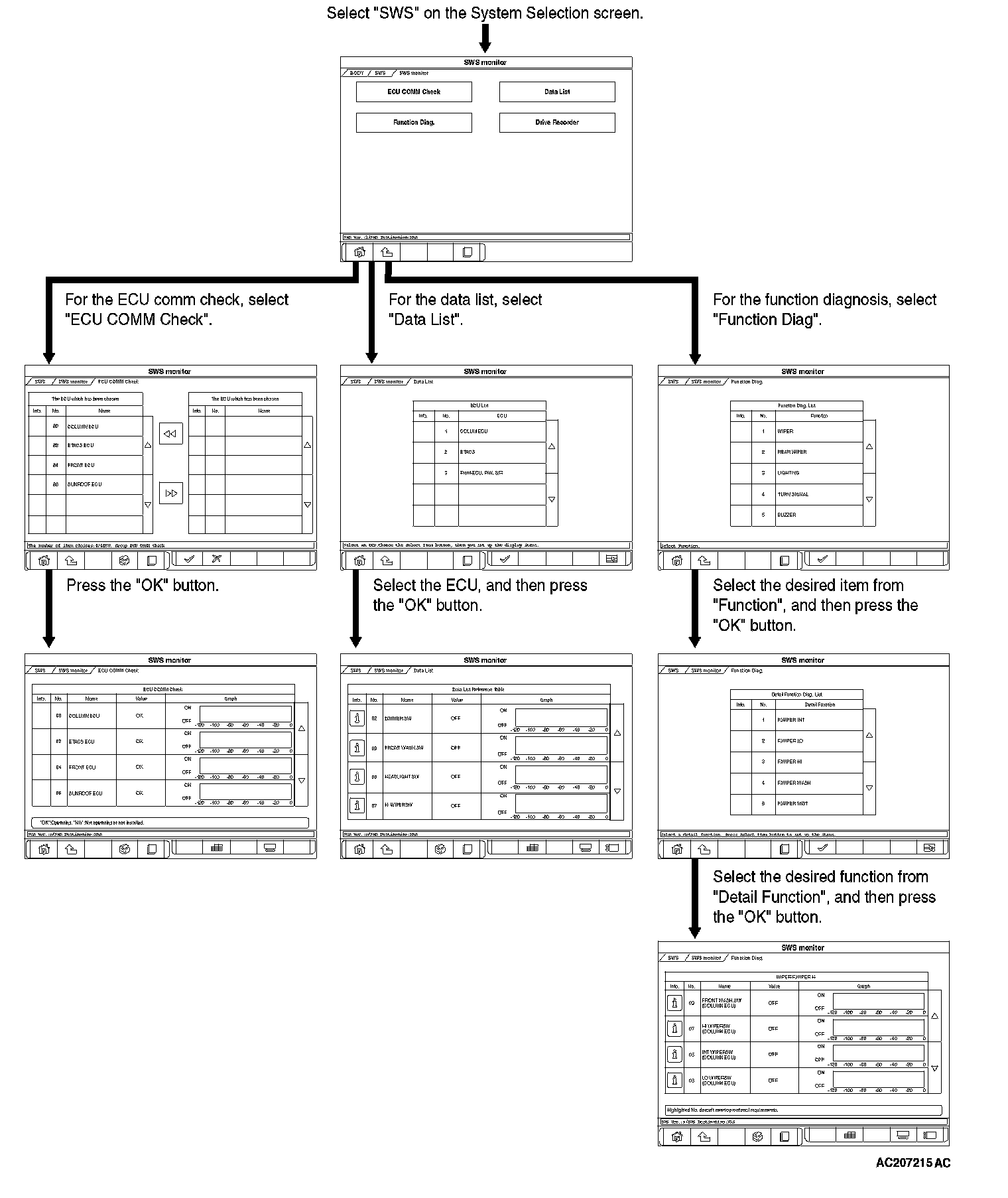 To carry out troubleshooting, operate scan tool MB991958 (M.U.T.-III Sub Assembly) as follows.