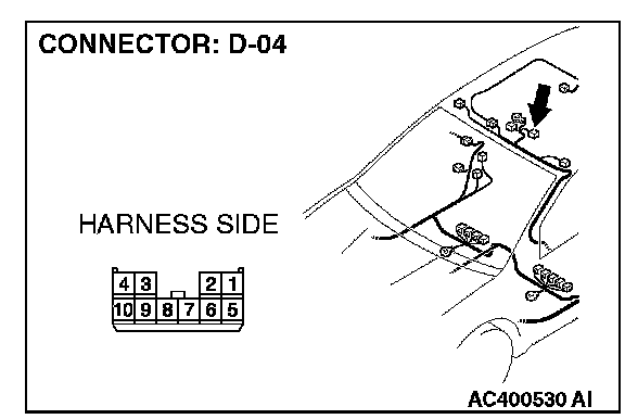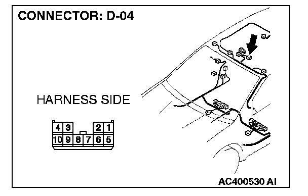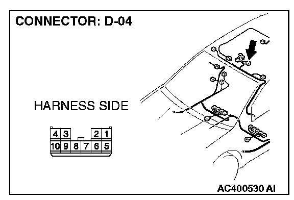 STEP 1. Check sunroof motor assembly connector D-04 for loose, corroded or damaged terminals, or terminals pushed back in the connector.