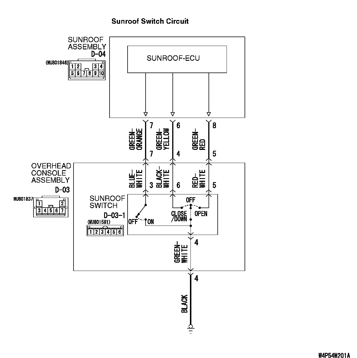 INSPECTION PROCEDURE F-2: Sunroof: Any Of The Sunroof Switch Positions Is Defective.Sunroof Switch Circuit: