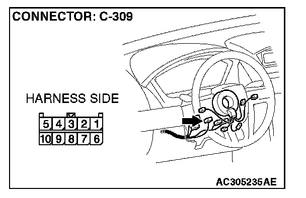 STEP 1. Check column switch connector C-309 for loose, corroded or damaged terminals, or terminals pushed back in the connector.