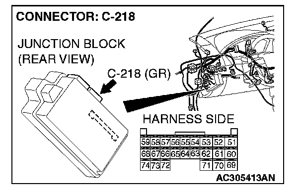 STEP 3. Check ETACS-ECU connector C-218 for loose, corroded or damaged terminals, or terminals pushed back in the connector.